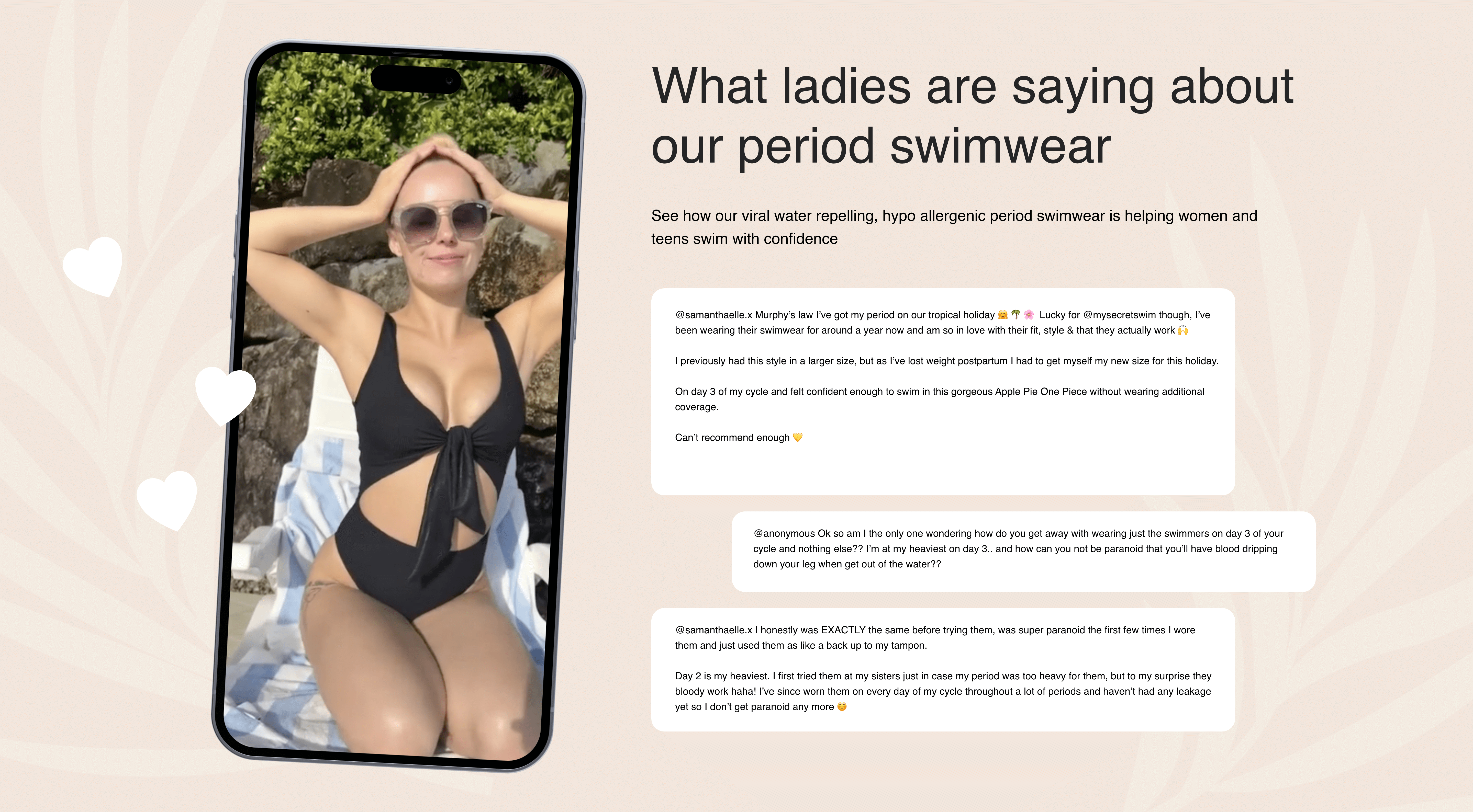 Whether its periods, pee, pregnancy, postpartum or perspiration our swimwear will takes care of your business.